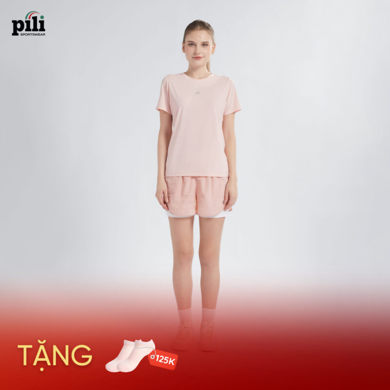 Tặng pack tất trị giá 125K khi mua set đồ nữ gồm áo T-shirt cổ tròn và quần short 2 lớp