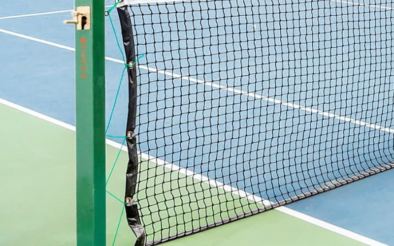 Lưới của sân Pickleball được đặt ở giữa sân và có chiều cao tiêu chuẩn là 36 inches (khoảng 91,44 cm) ở hai đầu và 34 inches (khoảng 86,36 cm) ở giữa. Lưới được làm từ chất liệu chắc chắn nhưng mềm mại, giúp các cú đánh không bị dội lại quá mạnh mà vẫn đảm bảo sự chính xác và kiểm soát.