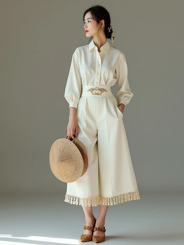 • Công sở thanh lịch: Áo sơ mi trắng + quần tây ống đứng + áo blazer + giày cao gót + túi xách da. Đây là công thức kinh điển cho môi trường công sở, thể hiện sự chuyên nghiệp và thanh lịch.