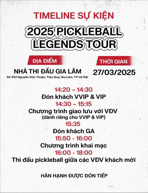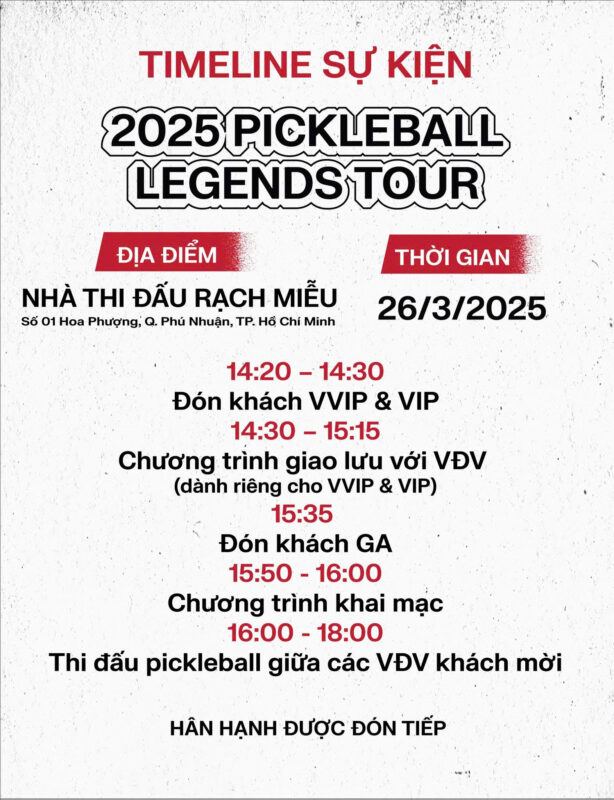 Quy tụ những tay vợt hàng đầu thế giới ngay tại Việt Nam, 2025 JOOLA Pickleball Legends Tour hứa hẹn sẽ đem đến những trận đấu mãn nhãn, những khoảnh khắc thể thao ấn tượng và sự kết nối mạnh mẽ cho cộng đồng Pickleball.