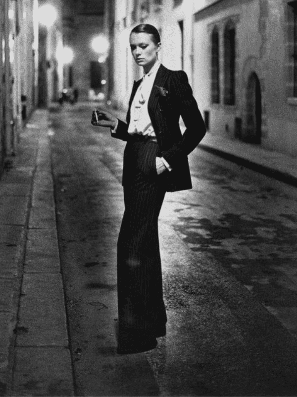“le smoking” Yves Saint Laurent, chụp bởi Helmut Newton cho tạp chí Vogue năm 1975