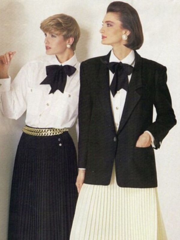 Đến những năm 80, ngọn lửa thời trang trung tính một lần nữa được thổi bùng lên mạnh mẽ khi phụ nữ trên thế giới quyết định diện những bộ vest đến nơi làm việc. Trang phục vest với phần cầu vai rộng, quần tây may đo cẩn thận kết hợp cùng cà vạt bản to – vốn thường gắn với trang phục của cánh mày râu, giờ đây đã chính thức trở thành “biểu tượng quyền lực” của các bóng hồng nơi công sở.